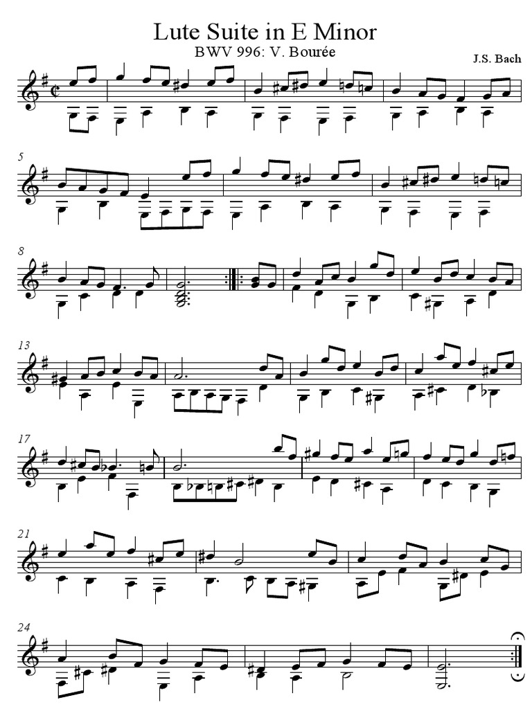 Bourrée in E minor BWV 996 for Guitar sheet music and TAB will be available on