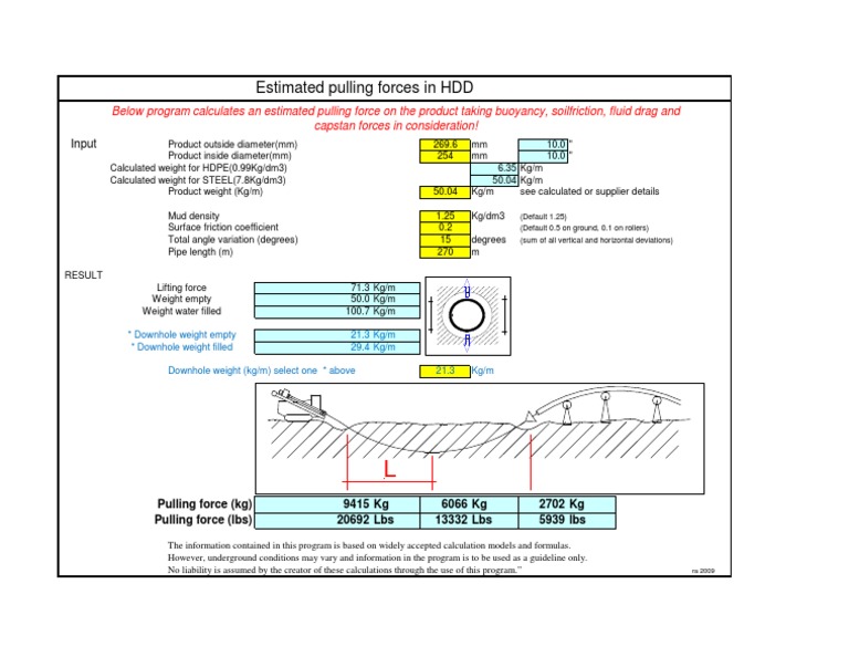 Below program calculates an estimated pulling force on the product taking buoyancy, soilfriction, fluid drag and capstan forces in consideration! Input