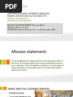 STARTERS: ROASTED OR SMOKED CHICKEN WITH GARNISHED ASSORTED SALAD BAR EGG MAYONNAISE COLE SLAW WITH CREAM SAUCE SAUCES: COCTAIL, MAYONNAISE & VINAIGRETTE MAIN DISHES CONTINENTAL: CHICHKEN CHASSEUR CHICHKEN SHREDDED BEEF, G/PEPPER VEGETABLE FRIED RICE SEASONAL VEGETABLES NIGERIAN: BABY CROCKER STEW MIX MEAT STEW JOLL OF RICE WITH DICED FRIED PLANTAIN EGUSI OF EFO-RIRO SOUP OGBONO SOUP EBA & AMALA DESSERTS: FRESH FRUIT SALAD CREAM CARAMEL SLICED CHOCOLATE RUM VANILLA KIRSCH CAKES 20 G 1 Egg 75 G 150 ML
