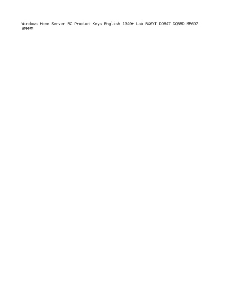 Windows Home Server RC Product Keys English 1340+ Lab RX6YT-D9847-DQBBD-MR697-8Mmrm