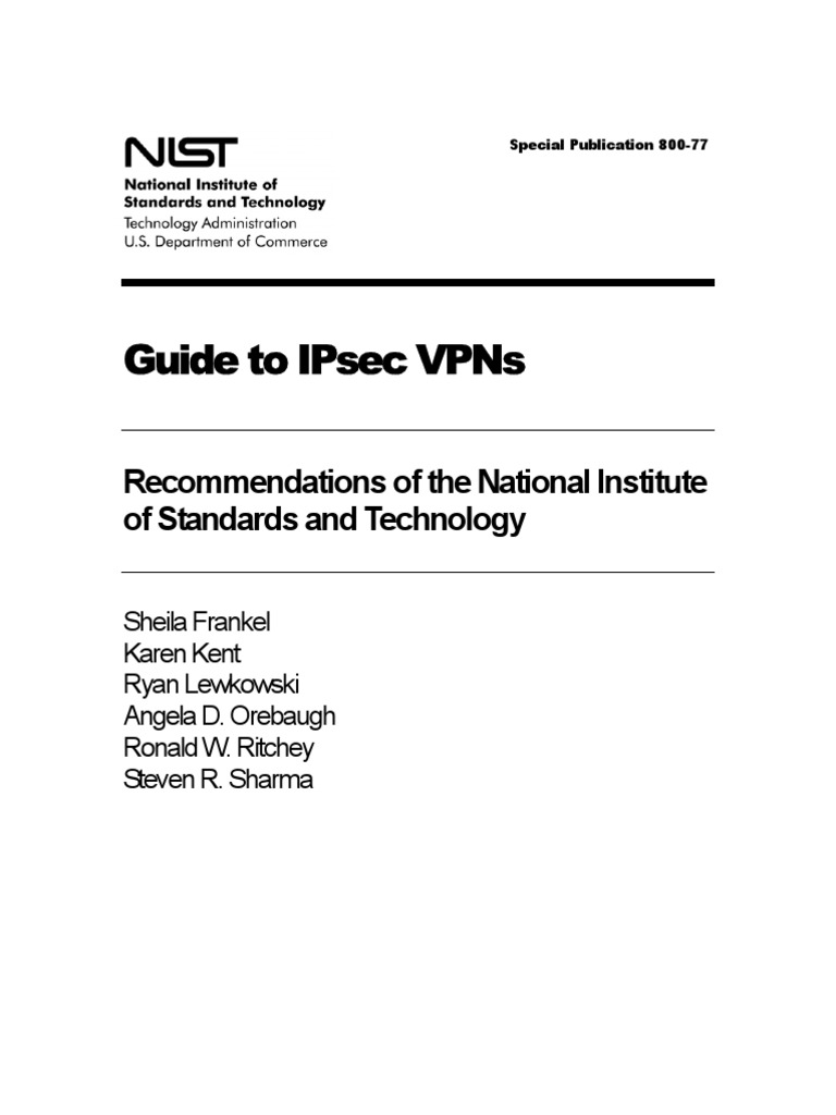 Guide to IPsec VPNs Recommendations of the National Institute of Standards and Technology Sheila Frankel Karen Kent Ryan Lewkowski Angela D. Orebaugh Ronald W. Ritchey Steven R. Sharma
