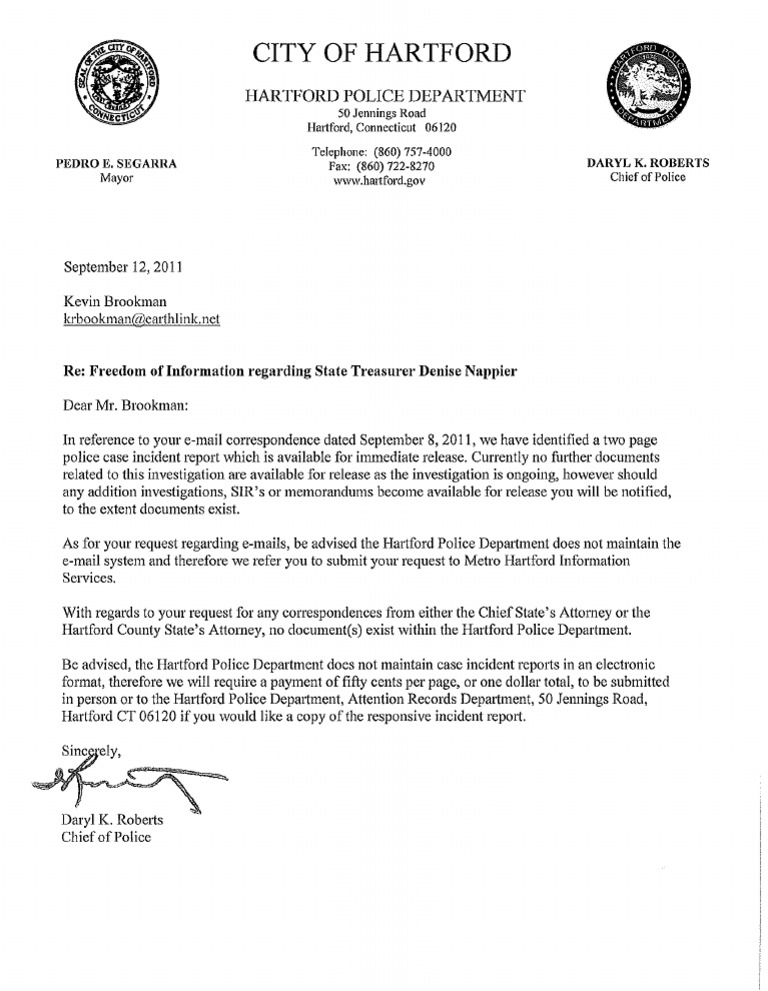 State Treasurer Dennise Nappier Response Letter