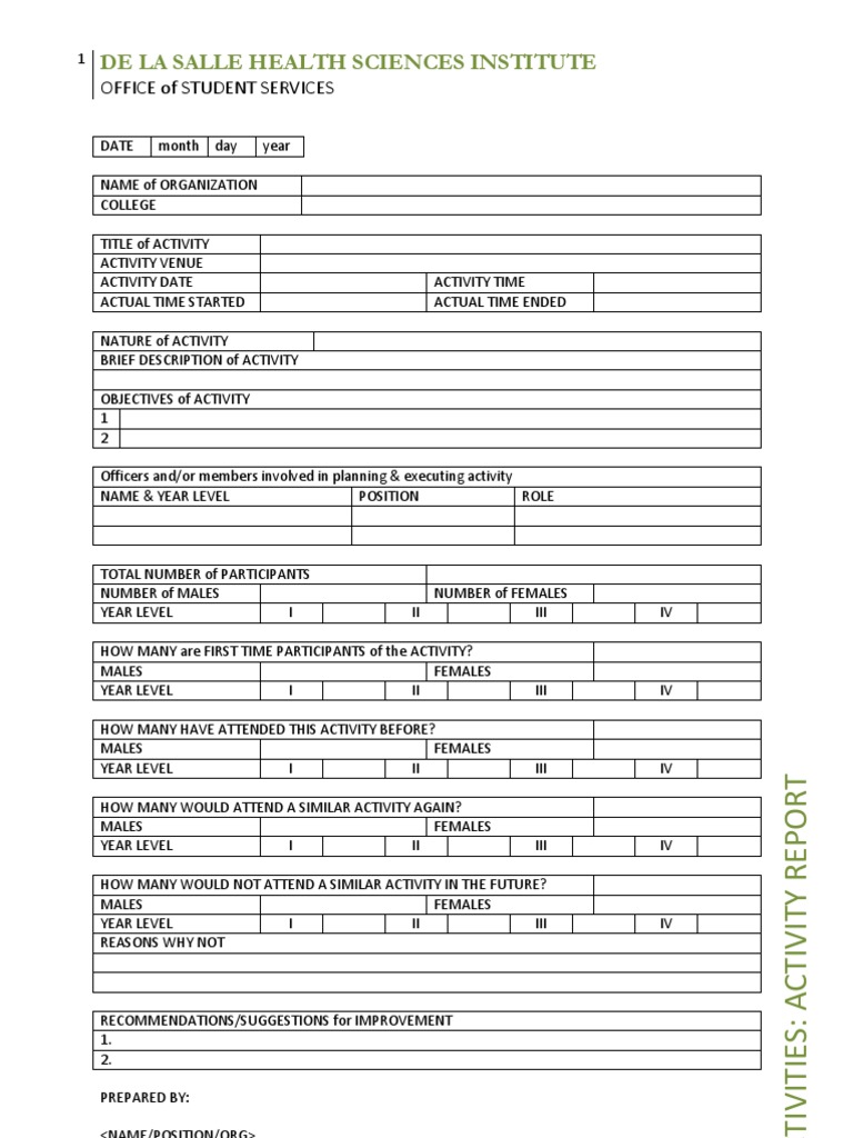 STUDENT ACTIVITIES: ACTIVITY REPORT