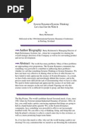 have defied solution. While significant gains in process and efficiency can be made by applying Quality or Six Sigma trainings, often the limitation of these approaches is met when the immeasurable or less tangible data, namely assumptions and beliefs are key to evolving more effective actions and results. A systems approach to organizational learning is key to evolving the capacity of employees because it supports their understanding how they are a part of the current unfolding story and how they can leverage a change. Systems Sensing and Thinking is a way to improve the quality of conversations happening within your organization around complex business issues by developing employees ability to see and speak of the systems which govern their behavior and results. We build this capacity by tackling real business issues, inviting all the key stakeholders of the issues to bring their perspective to the table and out of a more robust collective inquiry, crafting the action strategies to lever the change. Programs in Systems Sensing and Thinking 1-3 Day(s) Custom Design Programs on Systems Sensing and Thinking An introductory program on the basic building blocks of a system thinking approach, learning about reinforcing and balancing structures and introducing key classic archetypes by applying to personal and professional lives. An advanced program that delves further into applying systems archetypes to current business, chronic, complex business issues. Essential pre-work on defining issues and key attendees to have whole systems represented in room. Half to One day Clinics on Chronic, Complex Business Issues: Develop the capacity to apply systems thinking to your business issues while engaging multiple perspectives on the issue and exposing additional folks to a systems approach. Typically follows the intro or advanced program to develop competency of key set of individuals in organization to further systems thinking application. Hourly Coaching on Systems Thinking: Competency takes practice, practice, practice. One on one or small group coaching on applying systems thinking to your business issues.
