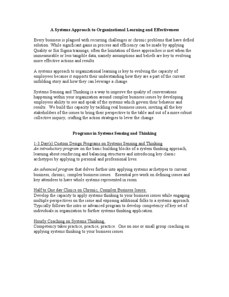 A Systems Approach to Organizational Learning and Effectiveness Every business is plagued with recurring challenges or chronic problems that