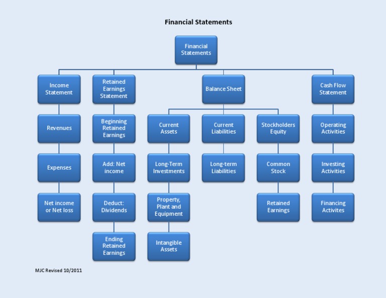 This document provides an overview of the key financial statements used by companies: the income statement, which reports revenues, expenses and net income/loss; the retained earnings statement, which shows the changes in a company's retained earnings balance; the balance sheet, which lists a company's assets, liabilities and stockholders' equity at a point in time; and the cash flow statement, which reports a company's cash inflows and outflows from operating, investing and financing activities.