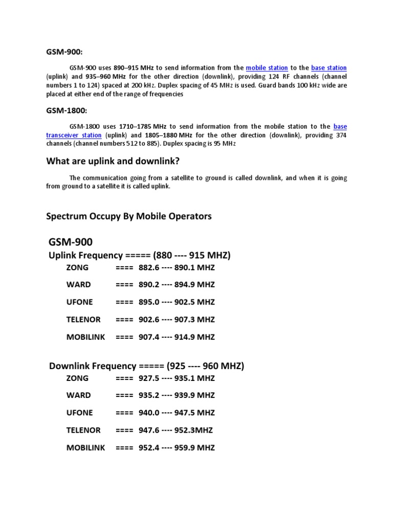 (uplink) and 935960 MHz for the other direction (downlink), providing 124 RF channels (channel
