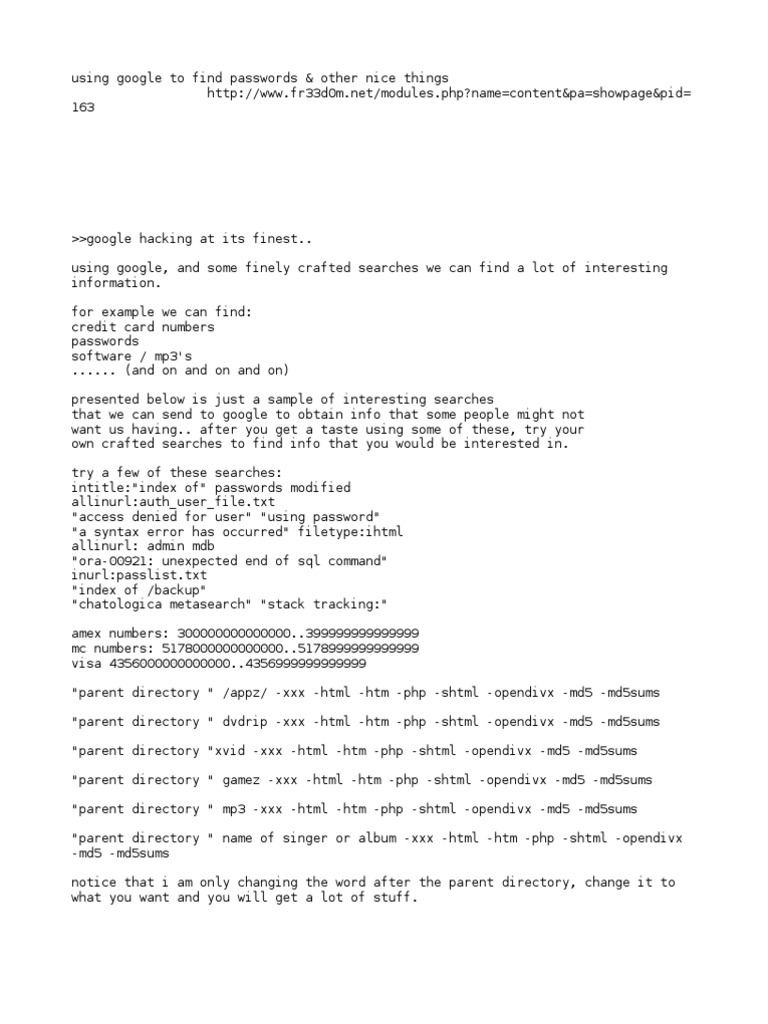 dcforum's password file. this file gives a list of (crackable) passwords,