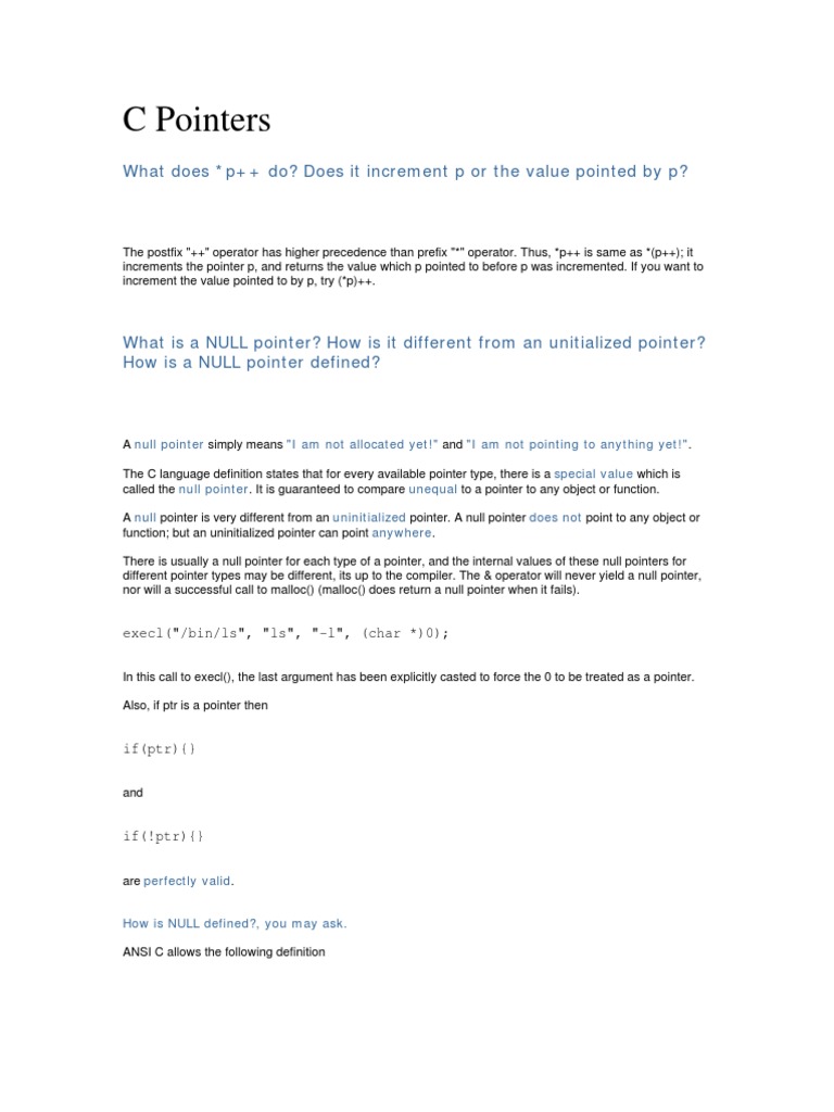 Make sure you are able to distinguish between the following : the null pointer, the internal