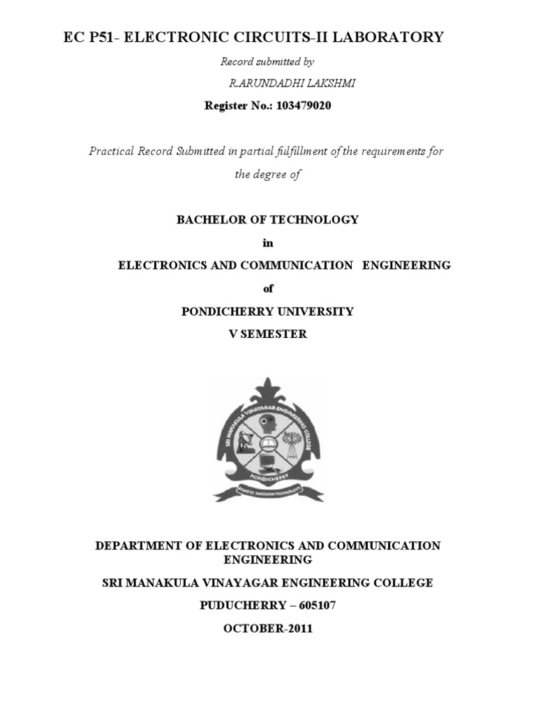 EC P51- ELECTRONIC CIRCUITS-II LABORATORY