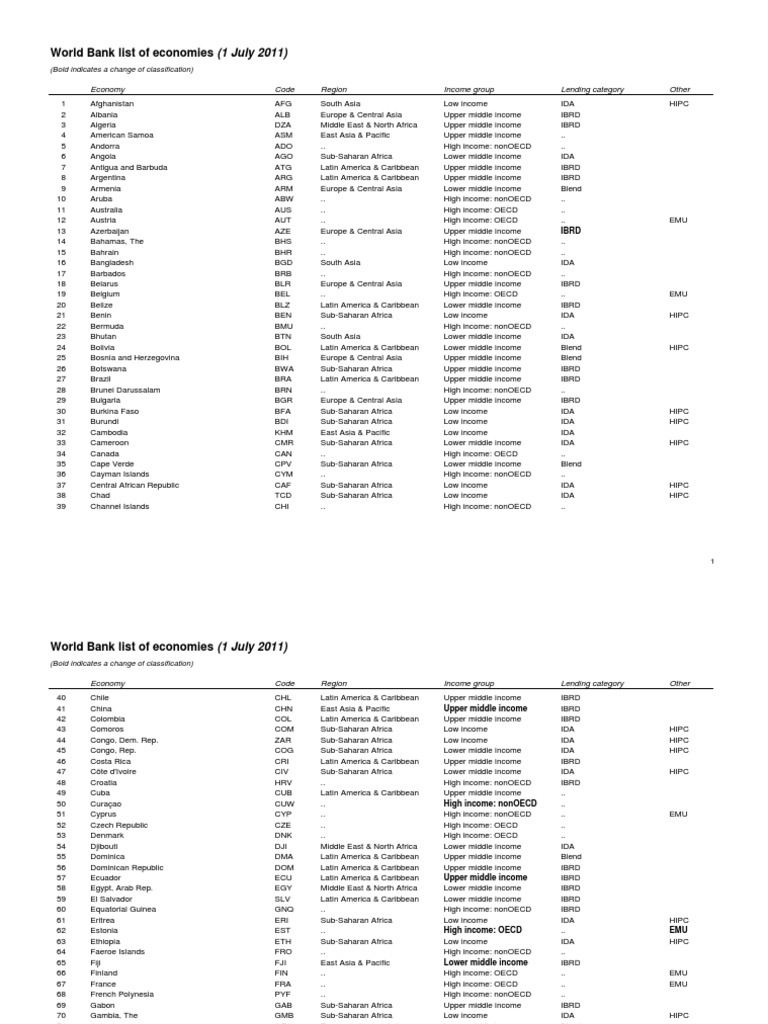 World Bank list of economies (1 July 2011)