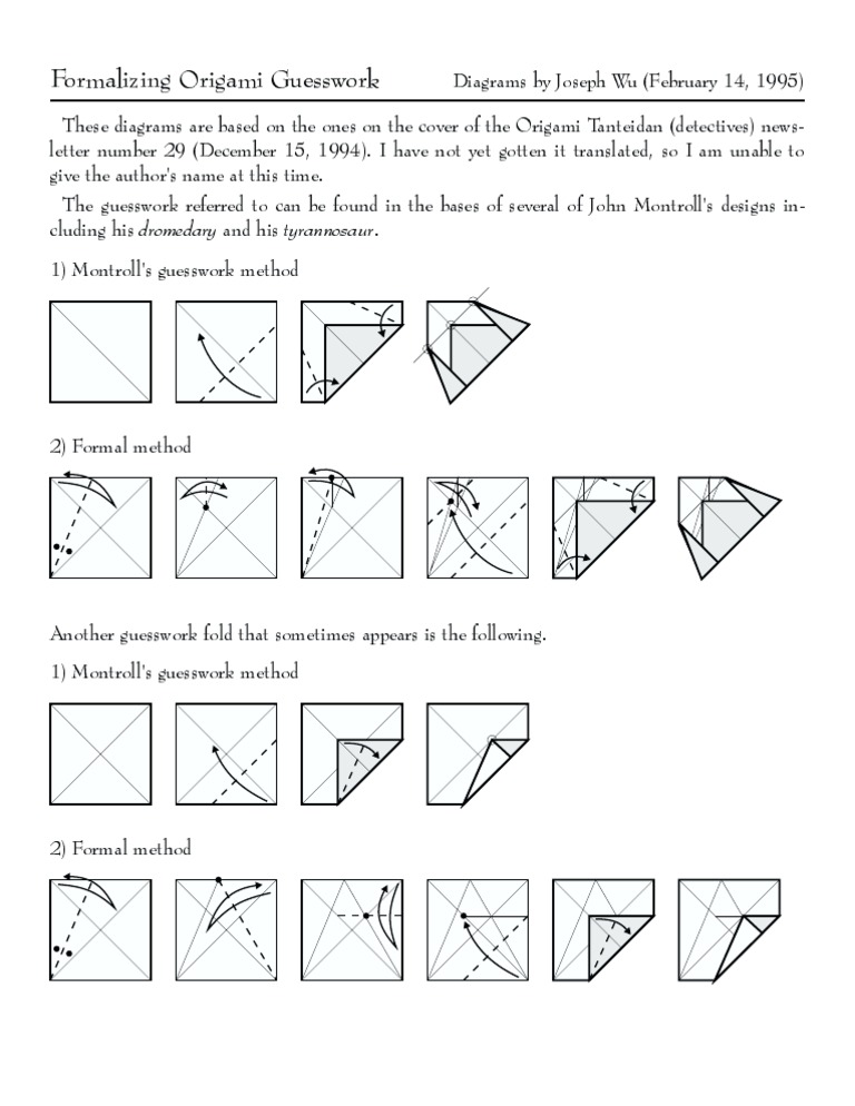 Formalizing Origami Guesswork Diagrams by Joseph Wu (February 14, 1995)