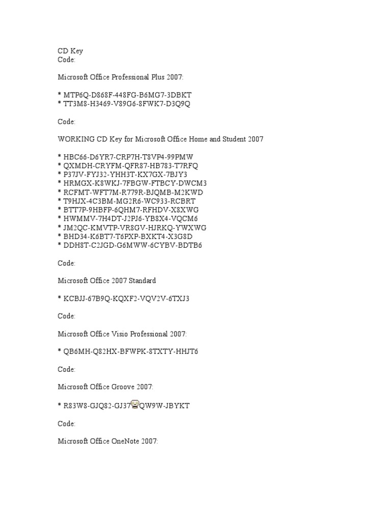 WORKING CD Key for Microsoft Office Home and Student 2007