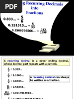 repeats is usually written as a single number (or group of numbers) with a line over it. For example,0.3333333... , 0.4166666... , and 0.13131313... are written