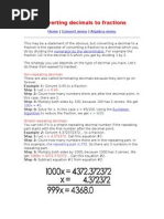 Sometimes it is easier to work with fractions than to work with decimals. It is therefore important to learn how to change decimals into fractions. a) How to convert a terminating decimal in fraction : write in the numerator the decimal without the point and in the denominator a 1 followed by the same number of zeros as the decimal places in the original number. Then you have to reduce the fraction if possible.