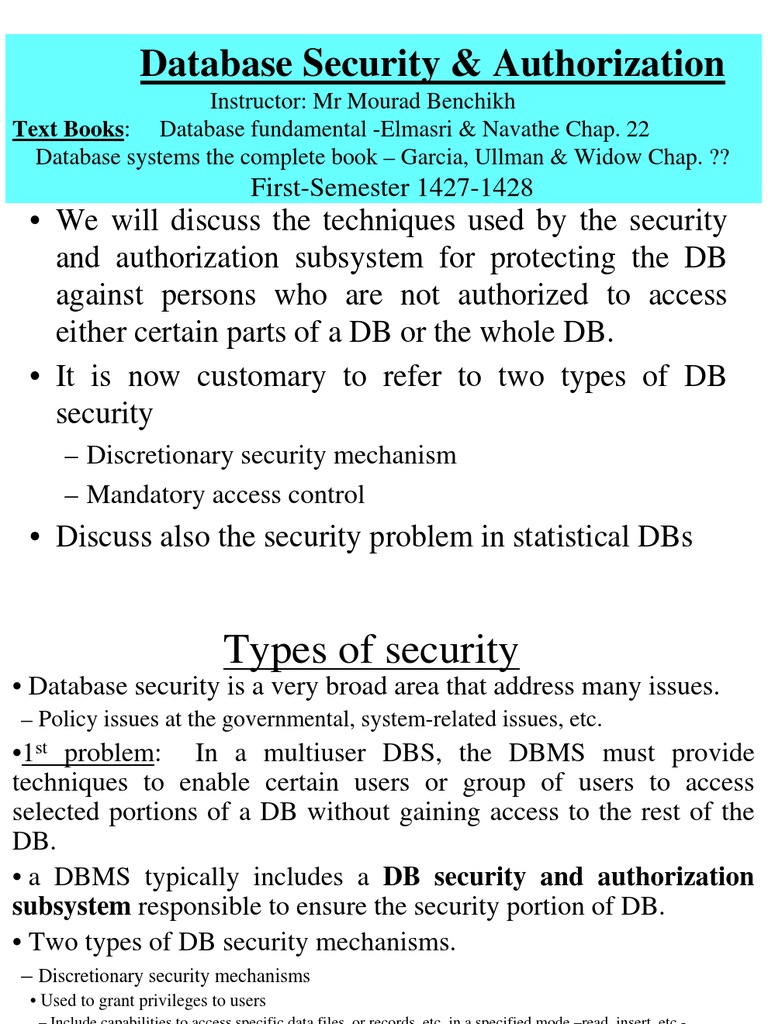 Database Security & Authorization