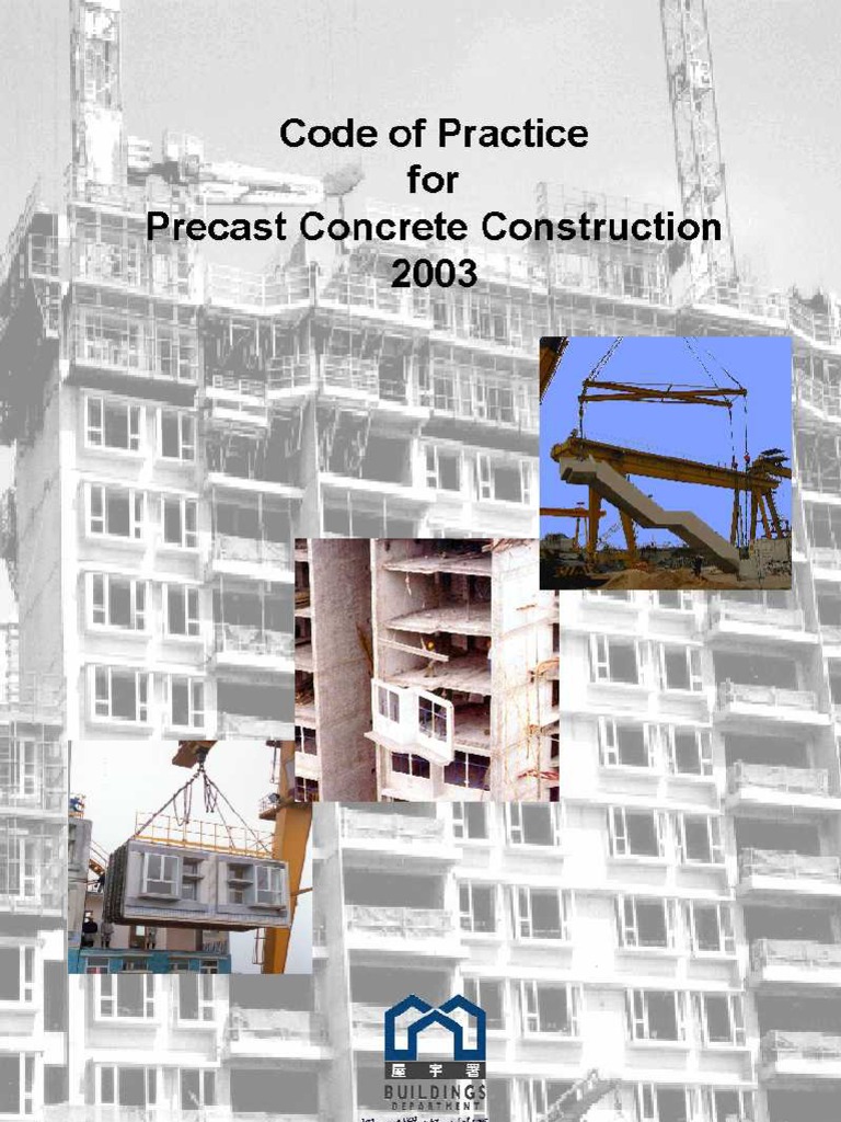 FOREWORD This Code of Practice was prepared under the direction of the Hong Kong Buildings Departments Steering Committee on the Consultancy Study on Precast Concrete Construction. The use of precast concrete construction can significantly reduce the amount of construction waste generated on construction sites, reduce adverse environmental impact on sites, enhance quality control of concreting work and reduce the amount of site labour. This Code of Practice is intended to assist in promoting the use of this construction method by providing guidelines for professionals and practitioners to refer to. The Code gives recommendations and guidelines on the design, construction and quality control of precast structural and non-structural elements. It has been drafted following an extensive review of international standards and other published literature. It is also based, where applicable, on local experience, practices and relevant standards and codes of practice. It covers the following main areas: design and durability, including water tightness of joints; construction of precast elements ranging from factory production, transportation and handling through to site erection; and quality control for both production and erection.
