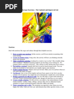 This book has emerged from a need to update our previous literature describing expressive therapies (ET), to clarify frameworks and principles, and to share some new activities. There is an urge to communicate some of the excitement that results from an integration of study, clinical observations, creativity in adapting to client needs, and both early and recent research. This book continues a strong interest to document ET, to present them in as clear a form as possible, to explore the links with other styles of counselling, and to propose some new developments. Preference in therapeutic style is often linked to personality (Barnett 2007). The evolution of ET a client-centred, activity-focused and exible method inevitably parallels the authors personal evolution. MARKS STORY Around the age of 16, my self-assessed neurosis led to a brief encounter with a psychiatrist. Therapeutically the appointment seemed to be of no help. He questioned me, I talked a little, avoiding anything of importance, he prescribed. After we talked, what then? I had no desire to return. I felt judged, patronized, a little pathologized, and the smell of his pipe set a sense memory that lingered creating an aversion towards therapy that involved interrogation from behind a desk. The experience turned me towards what was then considered alternative therapies, as a way to attempt to understand myself and make meaning of my world. My relationship with ET may have formed in the sandtray while at kindergarten. Memories remain of sand, water, blocks, building, creating and being happy. The state of satisfaction with creating something has remained a lifelong memory and a goal. When there are long periods of