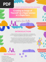 This category of activity is offered both in early stages of getting to know a client to support a positive start to the therapeutic process, and at the termination phase to consolidate previous work and complete with a future focus. Promoting healthy, positive self-esteem, nding language for positive aspects of self, provides focal points for these activities. Modalities used this way include visualizations, use of symbols to denote positive personal assets, role-play and exercises to support reconstructing life narratives.