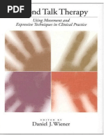 to largely direct the in-session process, and leads to many of the outcomes agged as the aim in a variety of other approaches. ET offers experiential therapeutic activities centred, as much as possible, on tailoring therapeutic context and methodology to the individuals style. This effectively catalyses emotional healing in both conscious and unconscious levels of the psyche. Relief from symptoms and changes in attitude and behaviours ow on from this essential work with emotion. The aim of ET is to create a doorway, through a supportive therapeutic relationship and provision of activity-based, change-oriented techniques, that leads to positive changes in behaviour, beliefs, attitudes and relationships. This is done by means of creative, expressive activities that focus initially on intra-personal emotional exploration, processes and skills, ultimately clearing the way for cognitive clarity, choice, and productive interactions. Invitational relating, clinical competence with the methods, offering choice, supporting expression of symptomatic, defensive behaviour, forming healthy, practical relationships, with a focus on client-specic emotional healing, sums up what has become central to our style of ET. EXPRESSIVE EXPERIENTIAL COUNSELLING Robbins (1980) saw one of the tasks of therapy as the facilitation of the activation, organization and release of emotional energy through verbal and nonverbal means. Oaklander (1988) placed great value on expressive activities in therapy with children. Her eclectic interventions, evolved from Gestalt therapy, included drawing, nger- and foot-painting, clay modelling, sculpture, collage, storytelling, writing, puppets, sensory experience, drama, play therapy and sandplay. Eriksons claim that whatever the client did could be used in a positive way (cited in Combs and Freedman 1990) has links to our ET approach. Erikson believed that people do not have to understand consciously how, or why, or even what, they have changed in order to change. This is evident for us when young clients achieve positive behaviour change through using art or sandplay therapy without necessarily demonstrating or providing clear evidence of cognitive understanding of their process. Combs and Freedman (1990) recommended a multidimensional approach to counselling, working with conscious and unconscious elements of the psyche, verbal and nonverbal communications, active and passive intentions, positive and negative emotions, the individual and the group. These authors see the use of symbols, stories, ceremonies and metaphor in counselling as effective tools, and refer to the smallest units of metaphor as symbols words, objects and mental images which are dense with meaning. They describe how a symbol is a discrete thing that sets off powerful
