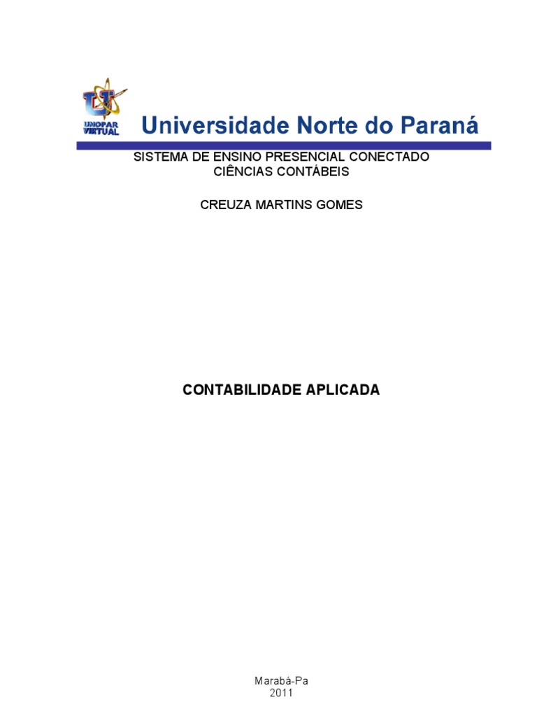 Trabalho Interdisciplinar apresentado ao curso do sexto semestre de Cincias Contbeis da UNOPAR Universidade Norte do Paran. Professores: Carla Patrcia Ramos Rodrigo de Menezes Trigueiro Daniel Ramos Nogueira Regis Garcia