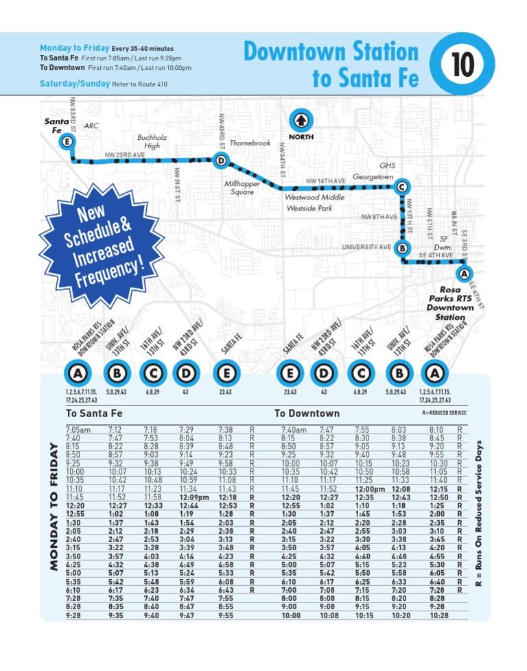 To Santa Fe First run 7:05am / Last run 9:28pm