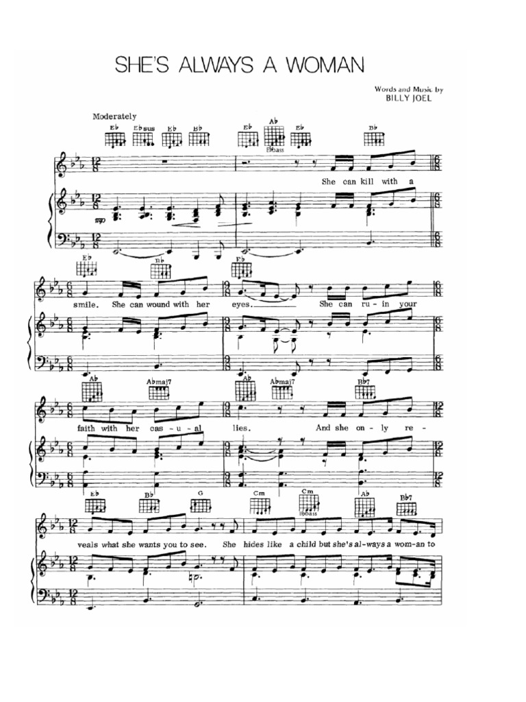 Her can kill with -4" a she can wound with your faith I e cas with her I lies. F L hides like a child but she's a-ways a wom-an to me. She can take you or leave you, 1'1 she can ask I""'" for the truth but she'll nev-er be ill.