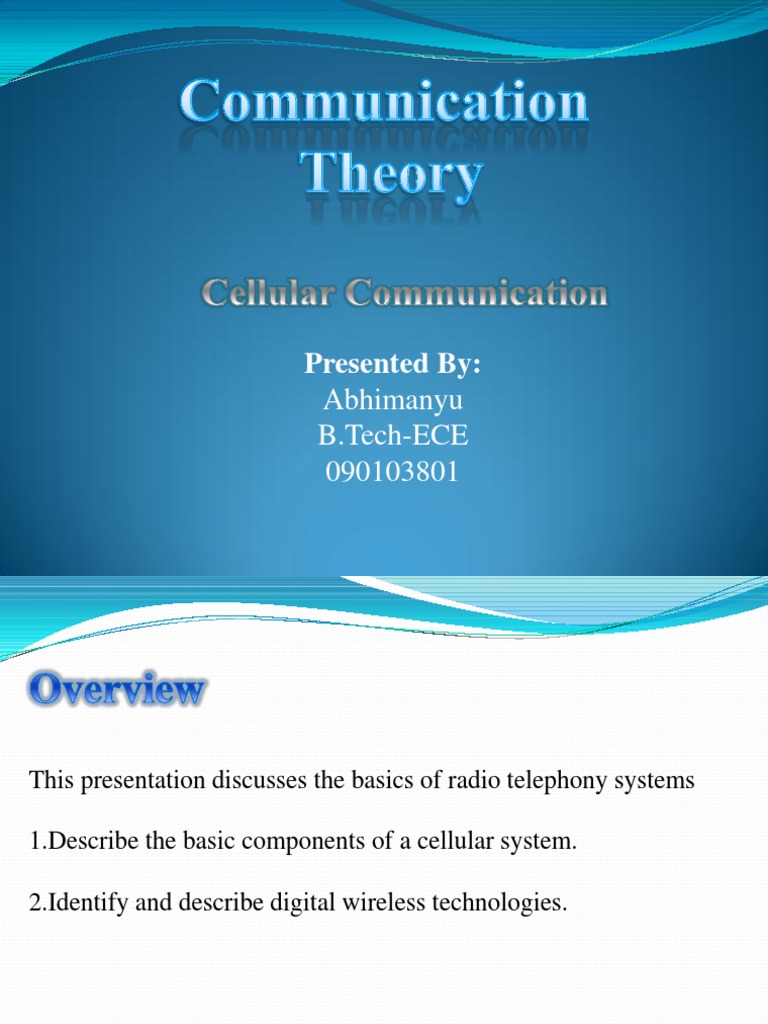 A cellular mobile communications system uses a large number of low-power wireless transmitter to create cells- the basic geographic service area of a wireless communications system. Variable power levels allow cell to be sized according to the subscriber density and demand within a particular region. As mobile users travel from cell to cell, their conversations are handed off between cells in order to maintain seamless service. Channels (frequencies) used in one cell can be reused in another cell some distance away. Cells can be added to accommodate growth, creating new cells in unserved areas or overlaying cells in existing areas.
