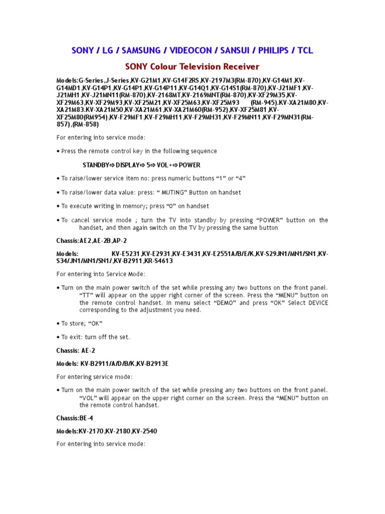 Models:G-Series,J-Series,KV-G21M1,KV-G14F2RS,KV-2197M3(RM-870),KV-G14M1,KV-