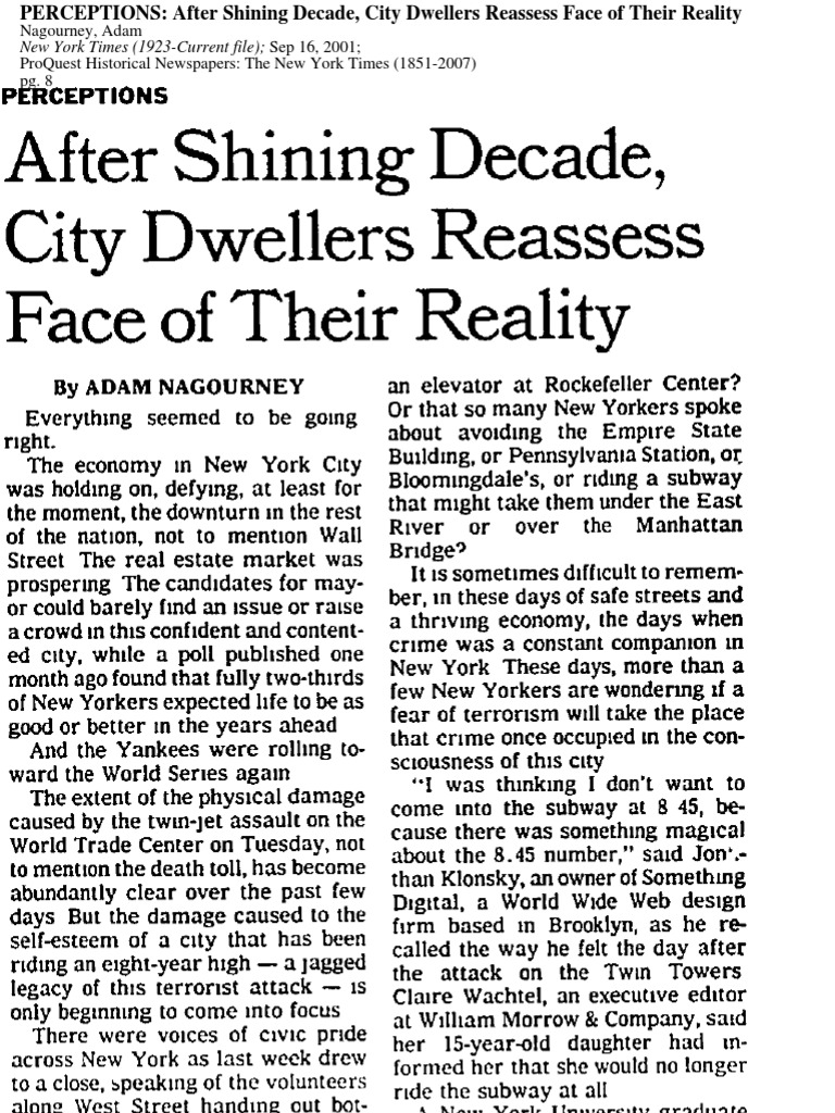 Nagourney, Adam New York Times (1923-Current file); Sep 16, 2001; ProQuest Historical Newspapers: The New York Times (1851-2007) pg. 8