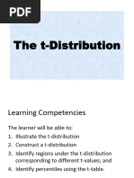 The precise mathematical form of the 2 distribution need not worry us here. Rather, the important point is that it constitutes a one-parameter family of distributions, which is conventionally labelled the degrees of freedom (d.f) of the distribution. As the d.f tend to innity, the2 distribution approaches the normal distribution. Critical values of the 2 distribution can be found in statistical tables. The t distribution may be dened in terms of the normal and an independent 2 variable. Let z N (0, 1) and 2 () where z and are independently distributed. Then z t=