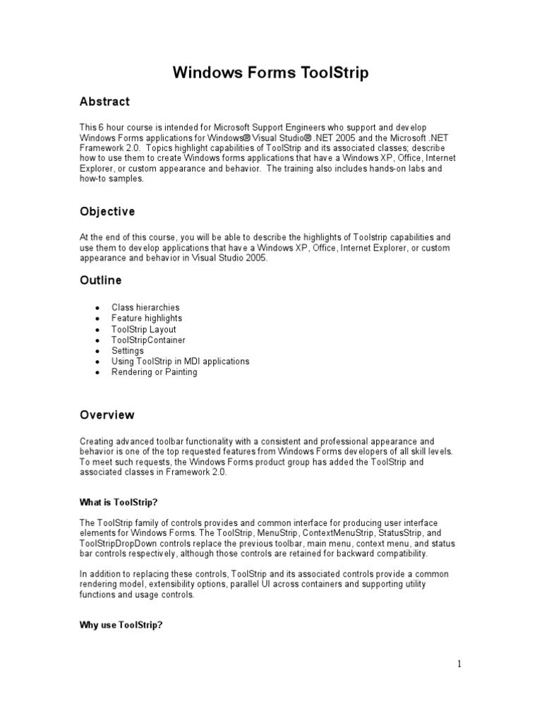 Framework 2.0. Topics highlight capabilities of ToolStrip and its associated classes; describe
