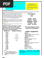 Important Dates to Remember 12/19-12/30 Winter Break Holidays; No school January 2nd, 2012 Teacher Workday spent may count towards your child's thirty minutes of reading for that day. FCAT Explorer: [Link] Harcourt Reading Site: [Link] Thurs. ding/trophy3/voc/[Link]