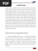 The Consumer Durables industry consists of durable goods and appliances for domestic use such as televisions, refrigerators, air conditioners and washing machines. Instruments such as cell phones and kitchen appliances like microwave ovens were also included in this category. The sector has been witnessing significant growth in recent years, helped by several drivers such as the emerging retail boom, real estate and housing demand, greater disposable income and an overall increase in the level of affluence of a significant section of the population. The industry is represented by major international and local players such as BPL, Videocon, Voltas, Blue Star, MIRC Electronics, Titan, Whirlpool, etc. The consumer durables industry can be broadly classified into two segments: Consumer Electronics and Consumer Appliances. Consumer Appliances can be further categorized into Brown Goods and White Goods. The key product lines under each segment were as follows. Before the liberalization of the Indian economy, only a few companies like Kelvinator, Godrej, Allwyn, and Voltas were the major players in the consumer durables market, accounting for no less than 90% of the market. Then, after the liberalization, foreign players like LG, Sony, Samsung, Whirlpool, Daewoo, and Aiwa came into the picture. Today, these players control the major share of the consumer durables market. Consumer durables market is expected to grow at 10-15% in 2007-2008. It is growing very fast because of rise in living standards, easy access to consumer finance, and wide range of choice, as many foreign players are entering in the market