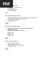17) the purpose of runner in casting ---------18) shape of a u.d.l.of cantilever beam is?. 19) which has high coefficient of friction ?.disc or band brakes 20) Engine valve seat is cooled at ----- temperature in liquid nitrogen(-180C) 21)Bucling is high in bar which is greater or smaller in length?. 22) Formula for deflection of beam? Ans; PL/AE 23) Which law says that pressure can be transferred from onr point to another in an undiminished form?. 24) Is Vane pump is Positive or non-positive displacement pump?. 25) As the altitude why density of the decreases?. 26) In the reversible adiabatic process entrophy is constant or not? 27) In which process the temperature of the system changes but there is no heat transfer to the surroundings?.