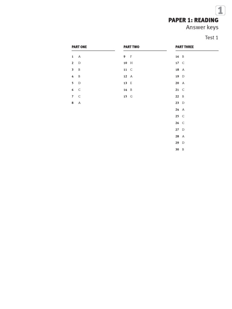 f c e h a n d b o o k f o r te ac h e r s | pa p e r 1 : r e a d i n g | a ns w e r k e ys f o r te s t 1