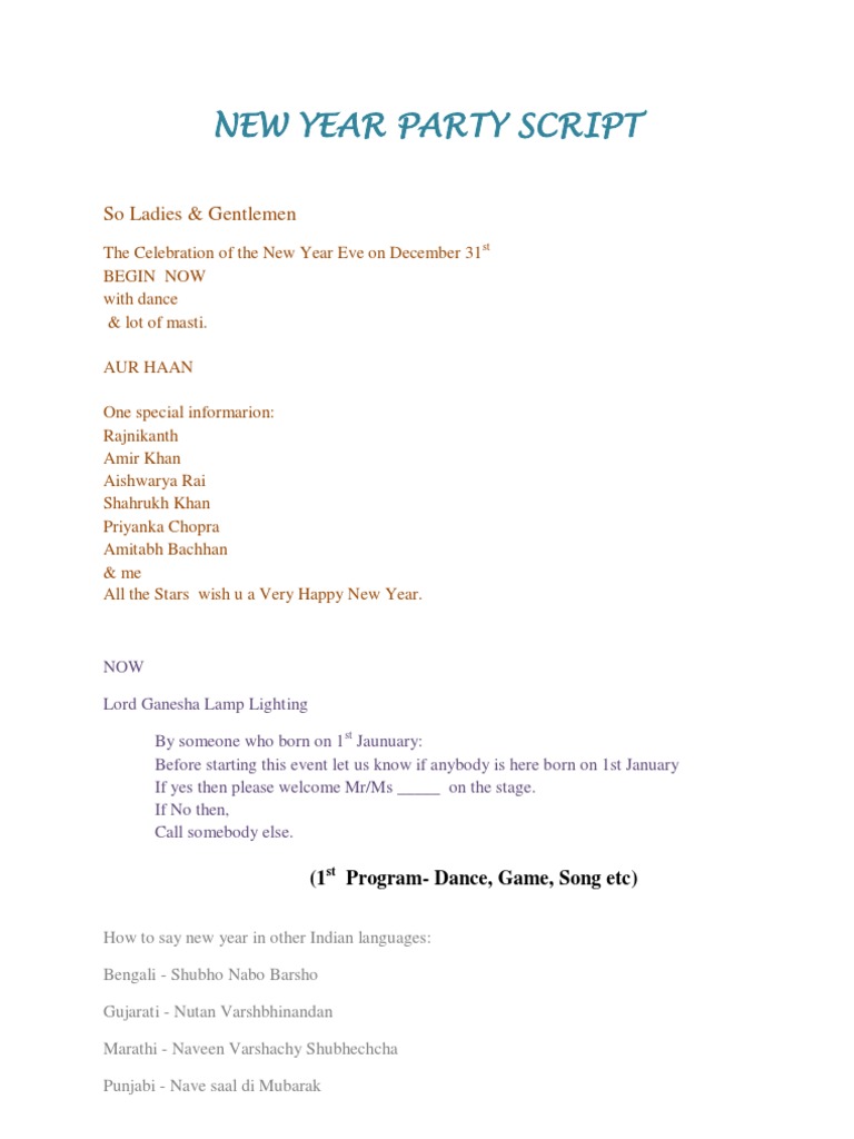 NEW YEAR PARTY SCRIPT