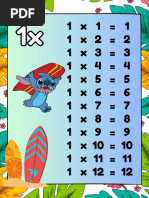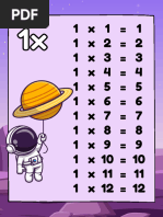 The document contains the multiplication tables from 0 to 12. It lists the result of multiplying any number 0-12 by any other number 0-12, with the product always being 0 when one of the numbers is 0. Each row contains the multiplication facts for one number.