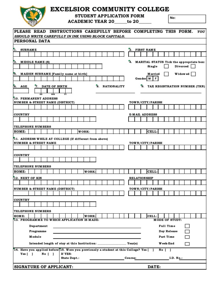 STUDENT APPLICATION FORM ACADEM IC YEAR 20______to 20______