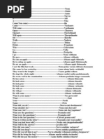 What Your Name What did you do? What should I do? What can I do? What are the questions? What were the questions? What is the last question? What is written in the letter? What you had been told? What will be the answer? Why did you come? Why did you sleep? Why did you tell him to go? Why did he bring the bag? Why did she pay the money? Why did they sit there? Why do you drive the car? Why are they late for the meeting? How did you come? How did you sleep? How did you drive? How did you write? How many apples are there in my hand? How many did you take? How much did he pay you? How much distance to go? How was the journey yesterday? Which way did you come? Which is your favourite colour? In which room did you sleep? Which story did you tell? Which is the sweetest fruit? Which is the best newspaper in Hindi? Which Indian state has the largest population? Where did you come from?