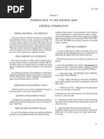TC 9-524 ELECTRICAL SAFETY Exposure to electrical hazard will be minimal unless the operator becomes involved with machine repair. The machine operator is mostly concerned with the on and off switch on the machine tool. However, if adjustments or repairs must be made, the power source should be disconnected. If the machine tool is wired permanently, the circuit breaker should be switched off and tagged with an appropriate warning statement. Most often the power source will not be disconnected for routine adjustment such as changing machine speeds. However, if a speed change involves a belt change, make sure that no other person is likely to turn on the machine while the operators hands are in contact with belts and pulleys. SAFETY RULES FOR MACHINE TOOLS Since different cutting tools and machining procedures are used on various machine tools, the safety precautions for each may vary. The following are general safety rules for any machine tool: Gears, pulleys, belts, couplings, ends of shafts having keyways, and other revolving or reciprocating parts should be guarded to a height of 6 feet above the floor. The guards should be removed only for repairing or adjusting the machine and must be replaced before operating it. Safety setscrews should be used in collars and on all revolving or reciprocating members of the machine tool or its equipment. Do not operate any machine tool without proper lighting. Never attempt to operate any machine tool until you fully understand how it works and know how to stop it quickly. Never wear loose or torn clothing and secure long hair, since these items can become caught in revolving machine parts. Ties should be removed and shirt sleeves should be rolled up above the elbow. Gloves should never be worn when operating machinery except when absolutely necessary. Always stop the machine before cleaning it or taking measurements of the workpiece. Do not lubricate a machine while it is in motion. Injury to the operator and damage to the machine may result from this practice. Never remove metal chips, turnings, or shavings with your hands; they may cause a serious cut. If the shavings are long, stop the machine and break them with pliers or a bent rod, and then brush chips off the machine. Remove cast-iron chips, which break into small pieces, with a brush. Never wipe away chips when the machine is operating. Always wear safety glasses or goggles while operating machine tools. Also, wear respiratory protection if operation creates hazardous dust. All persons in the area where power tools are being operated should also wear safety eye protection and respirators as needed. Know where tire extinguishers are located in the shop area and how to use them. Never wear jewelry while working around machine tools. Rings, watches, or bracelets maybe caught in a revolving part which could result in the hand being pulled into the machine. Avoid horseplay. Tools are very sharp and machines are made of hard steel. An accidental slip or fall may cause a serious injury. Never use compressed air without a safety nozzle to clean machines or clothing. It will blow sharp, dangerous metal chips a long distance. Keep the floor around machines free of tools, stock, oil, grease, and metal chips. Tripping over metal on the floor, especially round bars, can cause dangerous falls. Wipe up all oil, grease, and cutting fluid spills on the floor as soon as possible to prevent a fall. Metal chips are very sharp and can easily become embedded in the soles of shoes, making them very slippery, especially when walking on a concrete floor. Never place tools or other materials on the machine table. Cluttering up a machine with tools or materials creates unsafe working conditions. Use a bench or table near the machine for this purpose. Always use a rag when handling sharp cutters such as milling cutters and end mills.