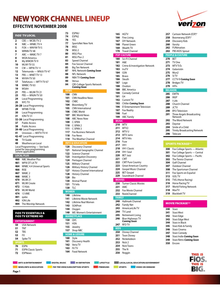 Verizon FiOS TV is frequently changing its channel offerings. To view our latest published channel lineup, please visit verizonfios.com/tv.