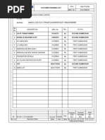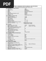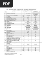 ### APPLIED VOLTAGE TEST DURING 1 MINUTE ### PRIMARY 50 KV X 20 KV 3 KV ### SECONDARY 50 KV 20 KV X 3 KV ### INDUCED VOLTAGE TEST X APPLY 2 TIMES OF THE RATED VOLTAGE AT 350 CYCLES PER SECOND FOR 18 SECOND ### TEMPERATURE RISE ### COIL X 65 8C 55 8C ### OIL 65 8C X 55 8C ### LOSSES AT RATED VOLTAGE ### NO LOAD LOSSES (1) . KW ### LOAD LOSSES (AT 75 C) 0 (1) . KW ### EFFICIENCY AT P.F. = 1.0 AT % CAPACITY 100% 75% 50% ### (1) . % (1) . % (1) . % ### EXCITING CURRENT (1) . % ### PERCENT IMPEDANCE (1) . % ### VOLTAGE REGULATION AT : ### P.F. = 1.0 (1) . % ### P.F. = 0.8 (1) . % ### ACCESSORIES ### GENERAL ACCESSORIES ### ### ### ### ### ### ### ### ### ### SPECIAL ACCESSORIES ### ### ### ### ### ### ### ### ### ### TO BE CONFIRMED BY VENDOR (1) ### CABLE DATA : (2) X HV PORCELAIN BUSHING ON SIDE/TOP WALL OIL LEVEL INDICATOR MANUAL OFFLOAD TAP CHANGER X GROUNDING TERMINAL X DRAIN VALVE X LIFTING LUG X ROLLER SKID BASE (PAD MOUNTED) THERMOWELL ELASTIMOLD BUSHING X MAGNETIC OIL LEVEL GAUGE C/W CONTACT BUCHHOLZ RELAY CONSERVATOR C/W SAMPLING VALVE AIRFILLED HV / LV JUNCTION BOX N2 FILLING VALVE PRESSURE VACUUM GAUGE RADIATOR FAN WINDING THERMOMETER