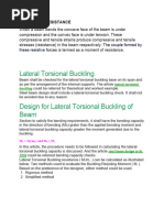 Lateral torsional buckling. Clause 9.6.1 requires all beams to be restrained at their supports. The strength and stiffness of the restraints are checked using clause 9.12.5. The restraint is required to hold the compression flange in place and is usually provided at the support by use of the bearing stiffeners and a suitable bearing.