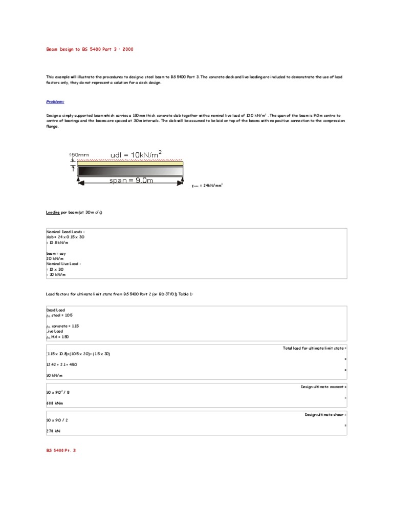 This example will illustrate the procedures to design a steel beam to BS 5400 Part 3. The concrete deck and live loading are included to demonstrate the use of load factors only, they do not represent a solution for a deck design.