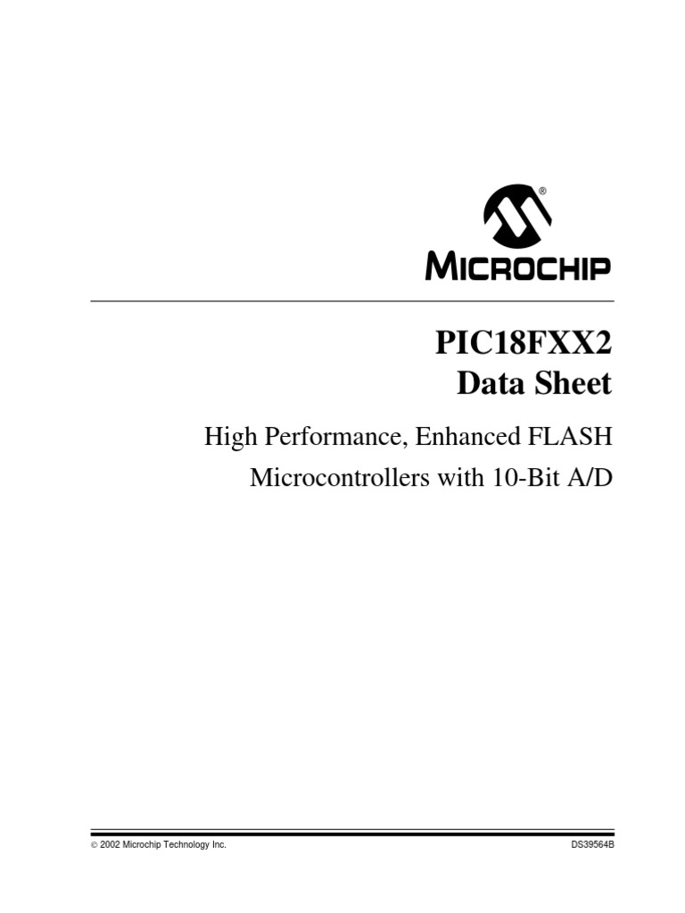 PIC18FXX2 Data Sheet: High Performance, Enhanced FLASH Microcontrollers With 10-Bit A/D