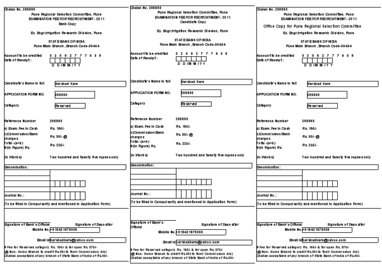 ChallanacceptableatanybranchofStateBankofIndiaofRs.30/