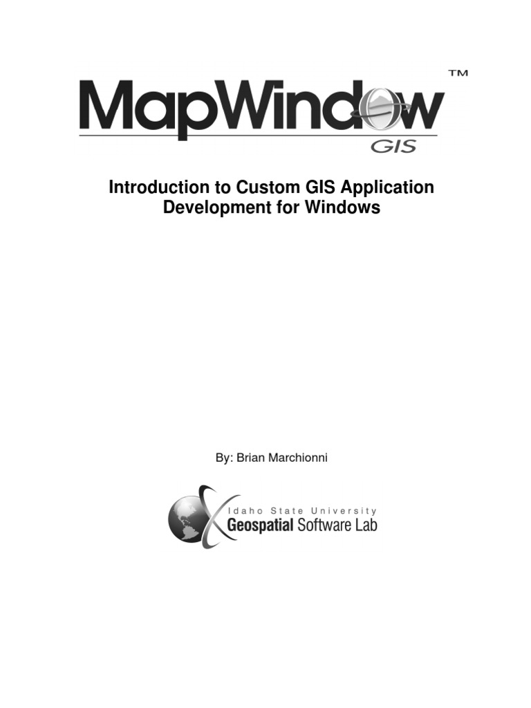 MapWindow GIS Introduction to Custom GIS Application Development for Windows Copyright 2008 Brian Marchionni All Rights Reserved. Department of Geosciences Idaho State University 1776 Science Center Dr. Idaho Falls, ID 83402 USA