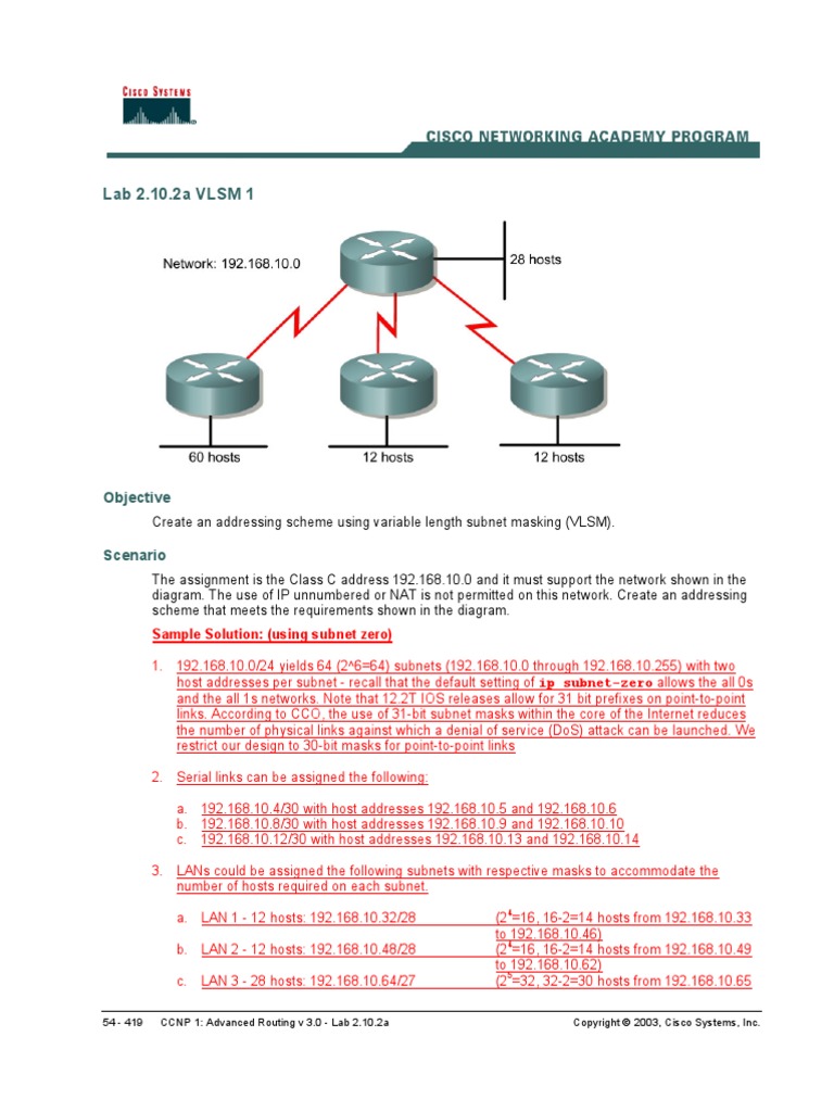 Lab 2.10.2b VLSM 2