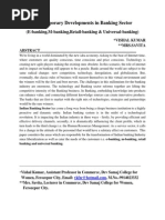 In the words of C.H.BHABHA Banking is the kingpin of the chariot of economic progress as such its role in expanding economy like India can neither be underestimated nor overlooked . The success of our plan is dependent among other things, on the smooth and satisfactory performance of the role by banking industry of our country. Banking industry had problems of different kinds in different phases of development. In the past interdependence period the Indian banking has evolved through four phases. These are:---(a) Foundation phase: The foundation phase is the period up to first nationalization of banks. In this phase the role of the banking sector in the Indian economy was redefined. Earlier, it was catering to the needs of the government, individuals and select traders. Now its role was extended to meet the needs of entire economy. (b) Expansion phase : This is a phase of mass banking, a determined effort was to make banking services available to all masses. The network of branches was expanded at a rapid speed. The banks were forced to open branches in rural and semiurban areas. in this phase, banks were directed to meet the requirements of this sector at a concessional rates. (c) Consolidation Phase: This phase started in 1985, as a result of weakness that emerged during the expansion phase. The RBI started some initiatives in form of relaxation in control, slowed down branch expansion Programme, etc. The focus was made on house keeping, customer service, management productivity and profitability. The main objective of these relaxations was to overcome the weaknesses which emerged from fast expansion and strict control of Reserve Bank of India. (d) Reforms and Liberalization Phase : Indian faced a macro economic crisis in 1991; the economy was growing at a very low rate. This set the Govt. of India on a path of liberalization and globalization of Indian Economy. The hidden non performing assets were capable of triggering of a major financial crisis. The banks were no where near the international